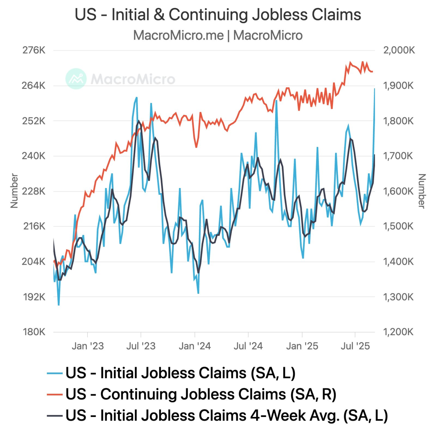 a. 美国上周初请失业金人数为 26.3 万人,超出预期的 23.5 万及前值的 23.7 万,该数值为 2021 年 10 月以来的最高水平。就业市场疲软强化了市场对美联储即将降息的判断;