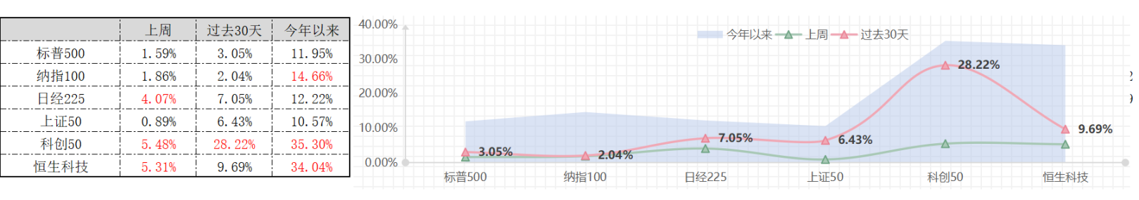 a. 降息预期锁定推动全球股票市场上涨,科创、恒科领跑全球 + 标普、纳指持续创新高;