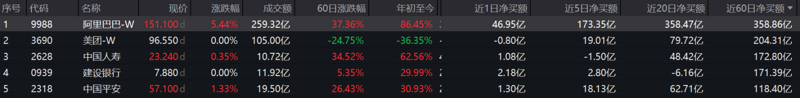 3. 南向资金持续流入,自研芯片 + 大模型助力阿里站稳净买入榜;