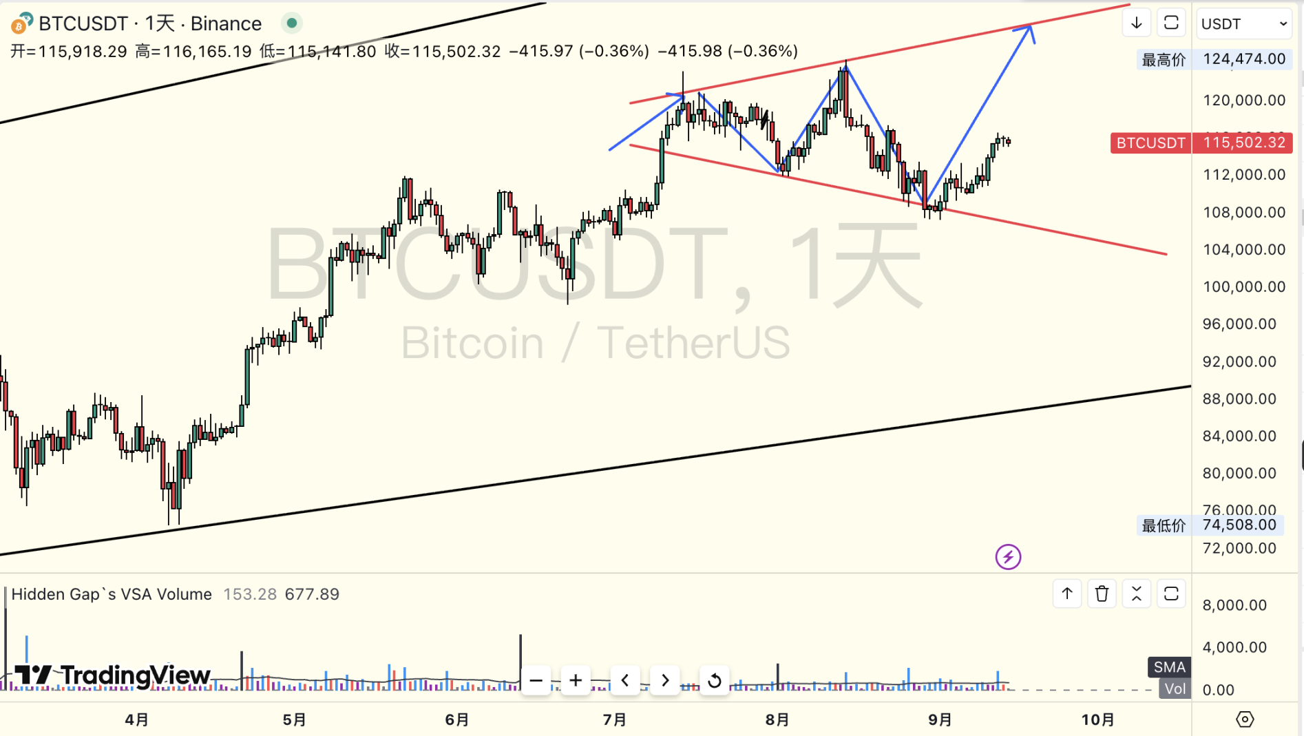 a. 上周对市场的预判大方向仍然向上,实际情况市场目前反弹到了 115000 左右的位置,受本周议息会议的影响,本周的博弈应该会大大加剧,虽说市场对降息抱有乐观态度,但一致性预期的时候最容易出现反转,因此短线角度看我认为本周会有较大波动,甚至可能下探,长线来看仍然看涨。
