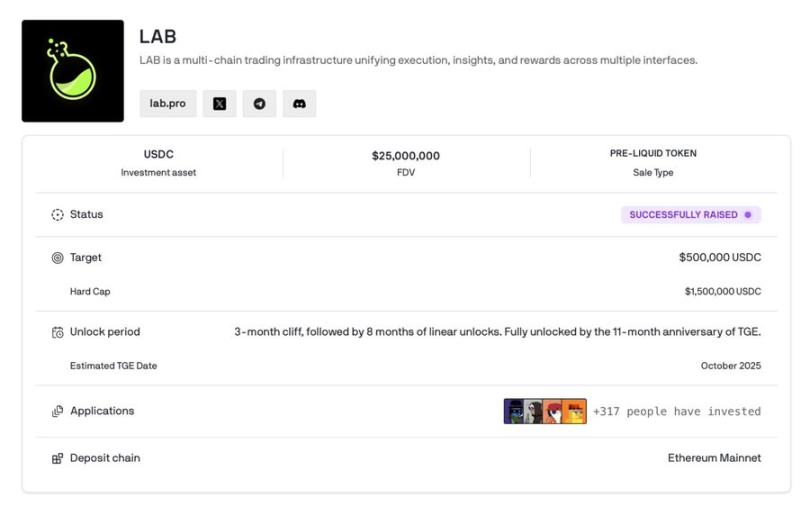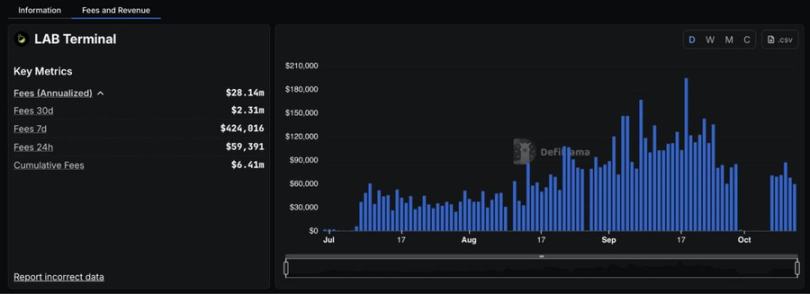 在 10 月 14 日 TGE 之前,LAB 已完成了超过 4 亿美元的交易量,并产生了超过 150 万美元的收入,且没有投机性挖矿或空投预期。