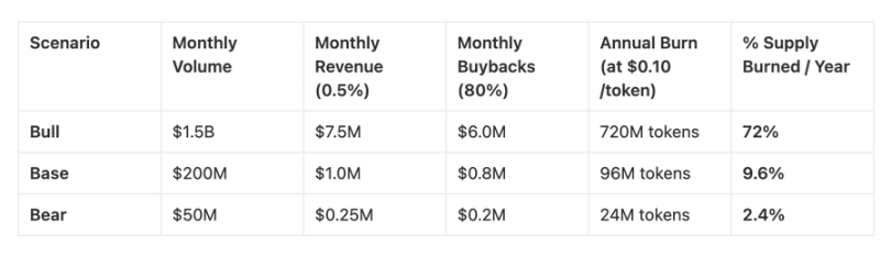 所有协议收入的 80% 分配给代币回购和销毁,而剩余的 20% 用于支持交易者激励和生态系统增长。