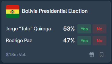 例如,「玻利维亚总统选举」不可能真正有内部人士,因为在势均力敌的竞争中,没有人真正知道人们将如何投票。