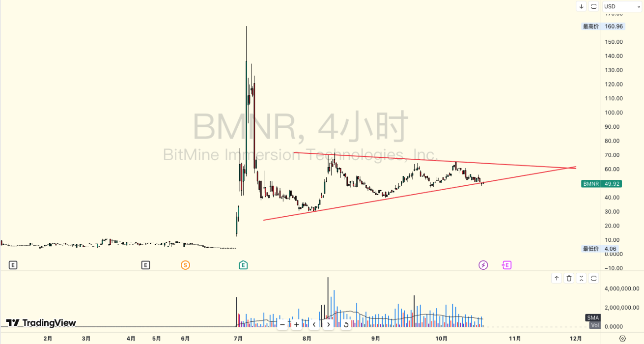 a. 过去一周市场修复不及预期,BTC 在短暂回到 115000 美元附近后,又继续下跌最低来到 103000,跌幅 10% 左右,当前下跌的主要逻辑是上周提到的连带风险,据传本次事件导致几家做市商爆雷,包括有几家小型的 DAT 机构由于循环贷的原因也开始卖币赎回,引发了市场下一轮下跌,从币股的表现来看,MSTR 目前的表现堪忧,事实上,MSTR 购买 BTC 的速率已经开始下降,即使在上周市场下跌的行情下也没见到 MSTR 有大额买入的情况,其股价距离 7 月份的高点也已跌去 40%,反观 ETH 的币股 BNMR 在本轮市场有点孤注一掷的意思,从链上显示 BitMine 从 10/11 以来已连续购入约合 15 亿美元的 ETH,成本在 3900 美元附近,币价表现来看 ETH 的反弹势头也较 BTC 更猛烈一些,BMNR 的股价当前有比较明显的三角收敛的趋势,如果市场回暖,其股价涨幅定会超过币价涨幅。除此之外,美财政部没收太子集团 12.7 万枚约 150 亿美元 BTC 的消息也给市场带来了一定程度恐慌情绪,过去就曾因美财政部转移 silk road 没收的 20 亿美元的 btc 而导致市场避险,当前这一数字来到 170 亿美元,对于敏感的市场来说多了更多黑天鹅的理由,美财政部的 BTC 战略储备也在一夜间增长 64%,占黄金储备的 3.5%。