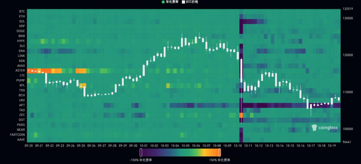 b. 本次大跌山寨损失最为惨重,大部分品种资费翻负,绝大部分品种在绝大部分交易所都经历了至少 50% 的插针,杠杆基本清空,山寨的积累相比 BTC、ETH、SOL、BNB 等需要更长,更多的市场共识以及 fomo 情绪,本次大跌之后,对山寨影响更为深远,因此对资费市场的恢复时间预判会更长。
