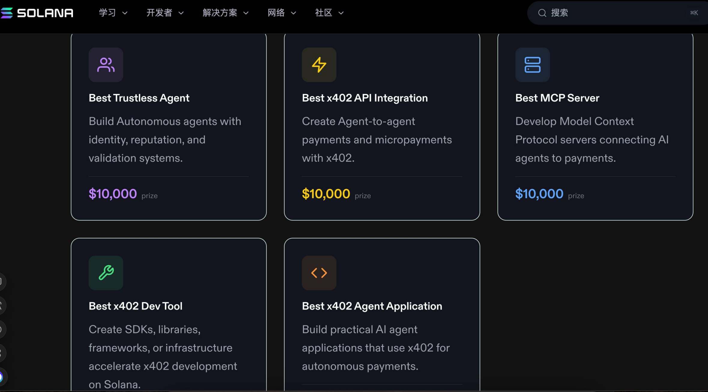 从这几个竞赛设置的主题上,也能看出围绕 Solana 生态里 x402 的一些热门或者说缺少的方向: