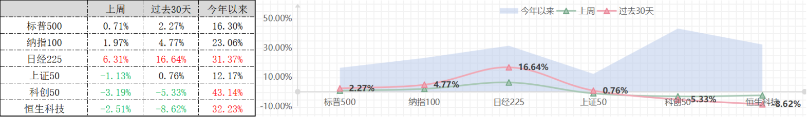 a. 银行股、科技股财报助力美股继续刷新高位,汇率低位 + 宽松货币政策预期,日经指数月内收获 16%+ 涨幅并突破 52,000 点;