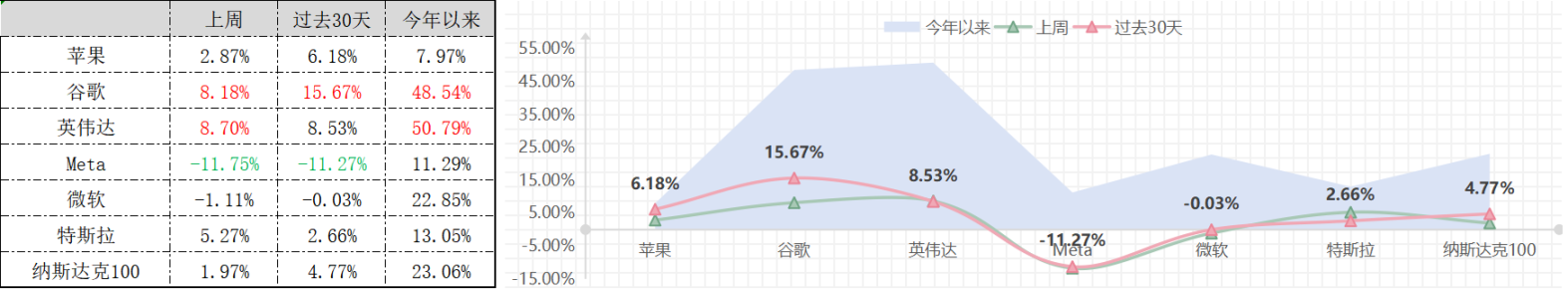 a. EPS(一次性税务冲击 + 运营支出与资本支出增加导致每股收益大幅下滑)大幅低于预期拖累 Meta 股价表现。而营收刷新、订单持续增强助力谷歌、英伟达领跑美股 7 巨头;