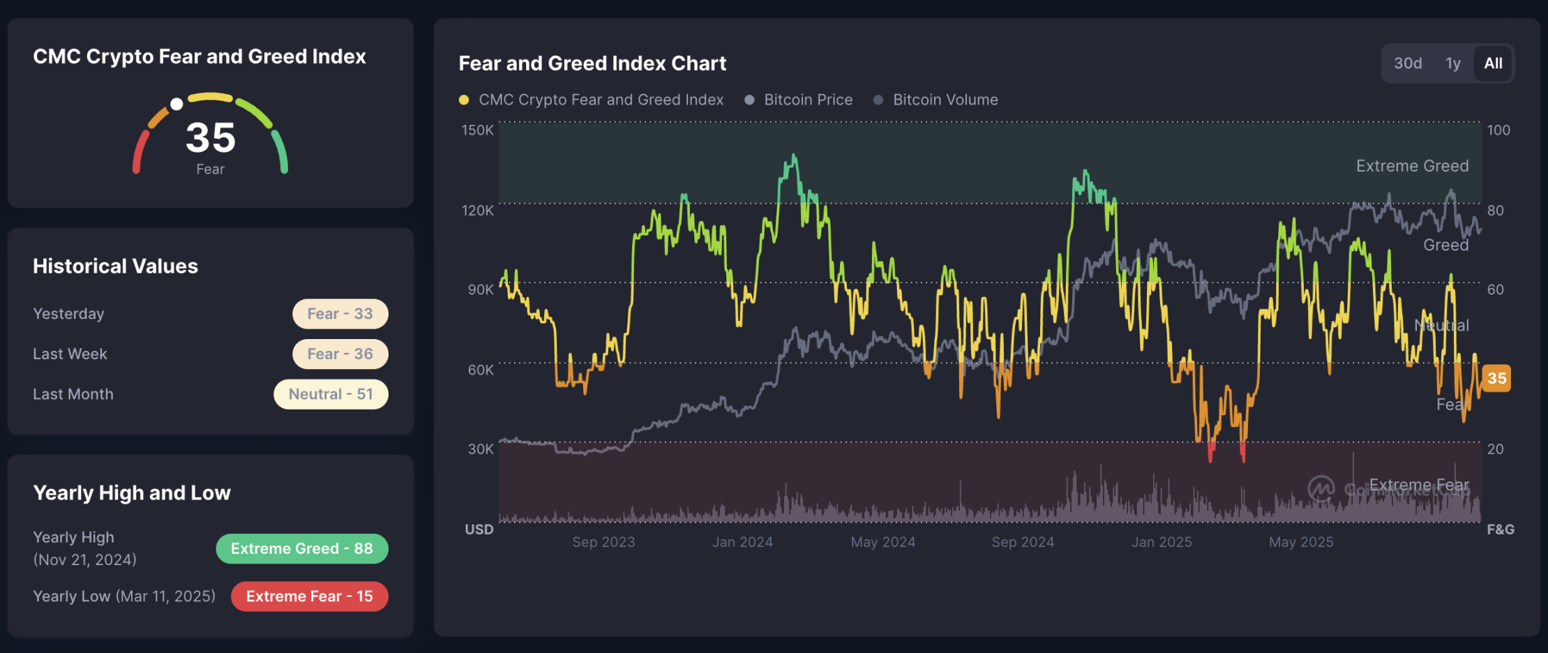 a. 恐慌指数本周仍维持在低位,但相较于 4 月份的贸易战市场无论在情绪还是币价都表现的更为镇定,当前流动性匮乏,预计市场将在底部进行整理。