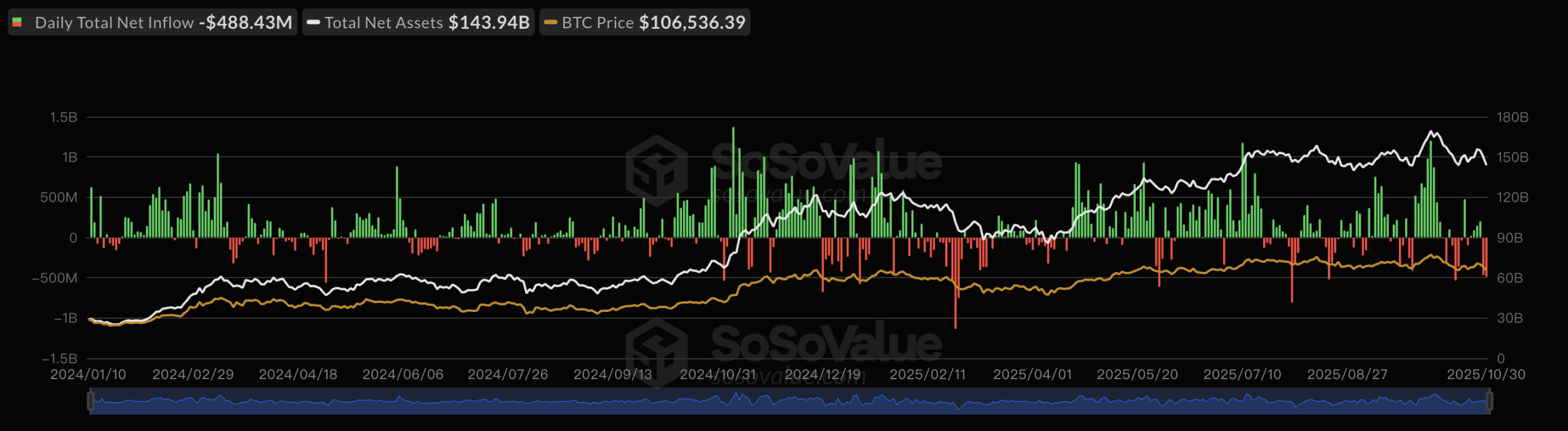 a. 上周市场震荡,现货比特币 ETF 合计净流出约 7.99 亿美元,呈现“周初小幅净申购、周中到周末连续大额赎回”的结构,从交易含义看,这一周的资金面与盘面是联动的:周初在“中美停火期延长预期 + 降息憧憬”背景下仍有净申购,但周三至周五的持续赎回与价格自 116K 一路回落到 106K 的过程高度同步,说明被动卖压和价跌触发的二次赎回叠加放大了波动;而且赎回并非集中在单一基金,几只头部产品(如 IBIT/FBTC/ARKB 等所在的总表列)同日出现负流,回到开始的内容,这是基金做防守姿态的举动,目的是等待宏观落地后再做调整。
