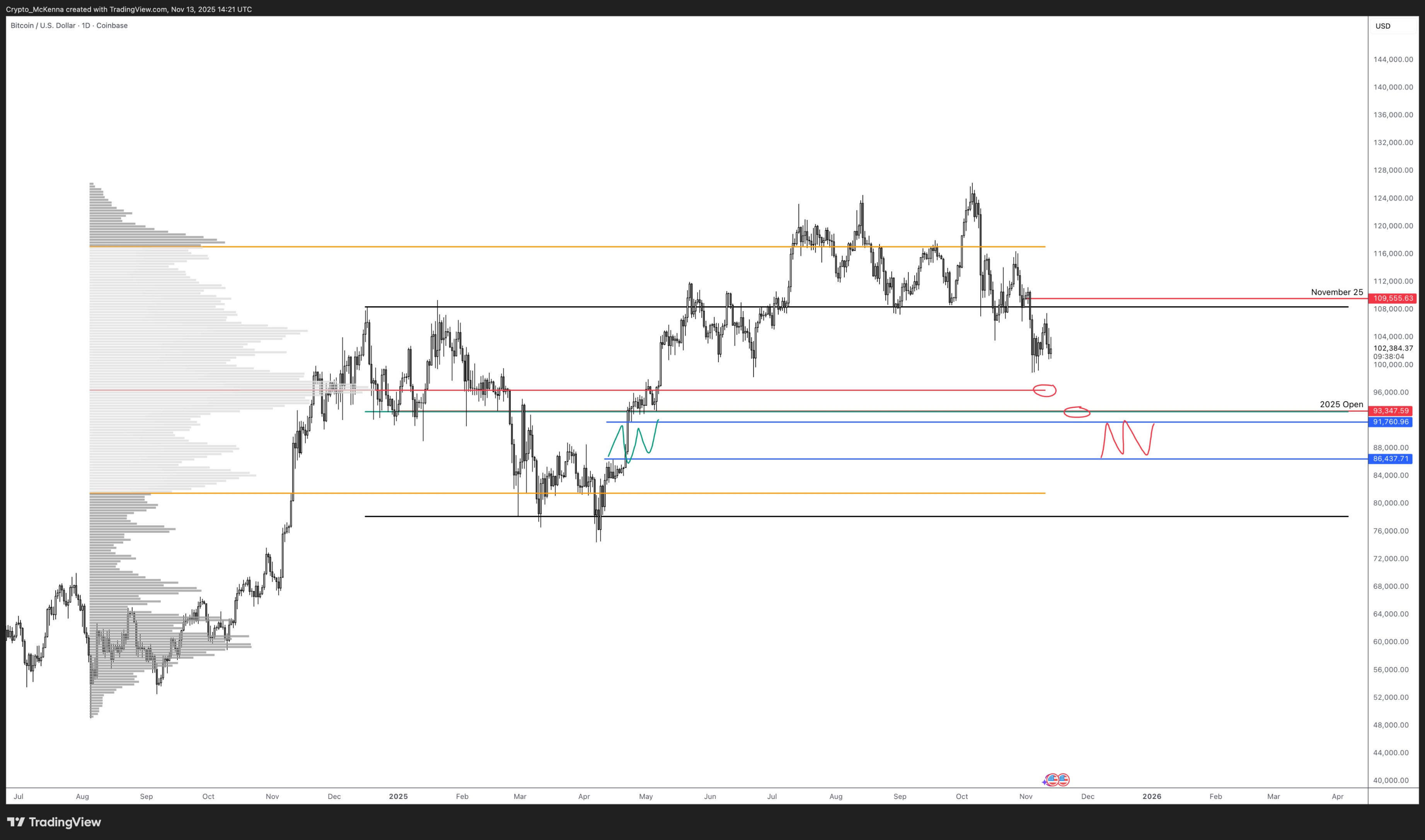 Arete Capital 合伙人 McKenna 表示,在假设价格低于 1 周 50 日均线的情况下,价格已突破 10.84 万美元的区间高点,目前重要支撑位 PoC 在 9.62 万美元,年度开盘价及中间区间在 9.33 万美元,最坏情况下的低点在 9.1 万美元至 8.6 万美元区间。如果出现短暂恐慌性跳水,价格可能会修正约 26%,而填补低点区域将导致约 31% 的传统修正。虽然无法确定最终价格,但这些支撑位是购买 BTC 的关键位置。预计今年无法触及历史新高,但相信 2026 年下半年 BTC 交易将超过 15 万美元,特朗普总统任期结束时 BTC 将超过 20 万美元,机构对 BTC 的接受度不会停止,BTC ETF 将继续积累,2026 年将迎来新的资金流入。
