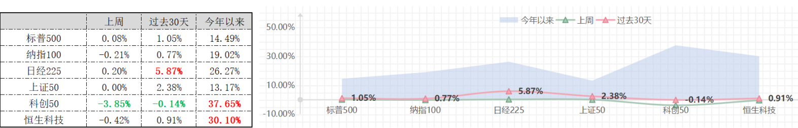 a. 利率路径的重新评估对全球主要股指表现造成影响,成长主题较宽基指数表现较为弱势;