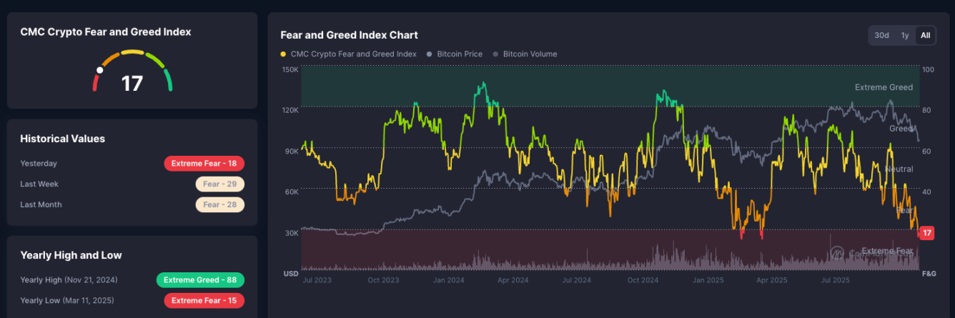 a. 过去一周市场遭遇更大的流动性危机,比特币周内持续下跌最低来到 93000 美元附近,较前一轮高点已跌去 26% 左右,是今年一月份以来的最大跌幅。虽然上周美国政府在停摆 43 天后重启,但当前加密市场的下跌是多方因素促成的结果,如现货比特币 ETF 持续流出、DAT 退潮、美联储降息预期减弱、加密行业内部暴雷等。其中 DAT 退潮是本轮下跌惯性较强的主要原因,DAT 的热潮始于今年二季度末,当前币价部分已跌破 DAT 公司本身的持币成本,最近媒体统计了部分主流 DAT 的数据,发现其 mNAV = 公司市值 / 金库内数字资产净值,已跌破 1,理想状态下 mNAV > 1,说明市场愿意给 DAT 公司一个故事溢价,而当前 mNAV < 1,这意味着 DAT 股票本身已不具备投资潜力,在当前市场环境下性价比不如自己屯币或买 ETF,而 DAT 公司本身是靠屯币的叙事在市场进行融资,如果市场不买账可能导致 DAT 公司可能造成卖币还债导致币价下跌再卖币的下跌螺旋,不过当前主流 DAT 公司如 Strategy、BMNR 都还没有这类消息爆出,而小型 DAT 公司对市场影响有限,从市场层面看,DAT 的「死亡螺旋」确实在局部放大了抛压和恐慌情绪,但当前持续下跌的主因仍然是宏观预期变化 + 长线筹码出逃 + ETF 资金流出;DAT 更像是这场暴跌中的一个高杠杆 beta 板块,导致加密市场有远超出美股跌幅的表现。