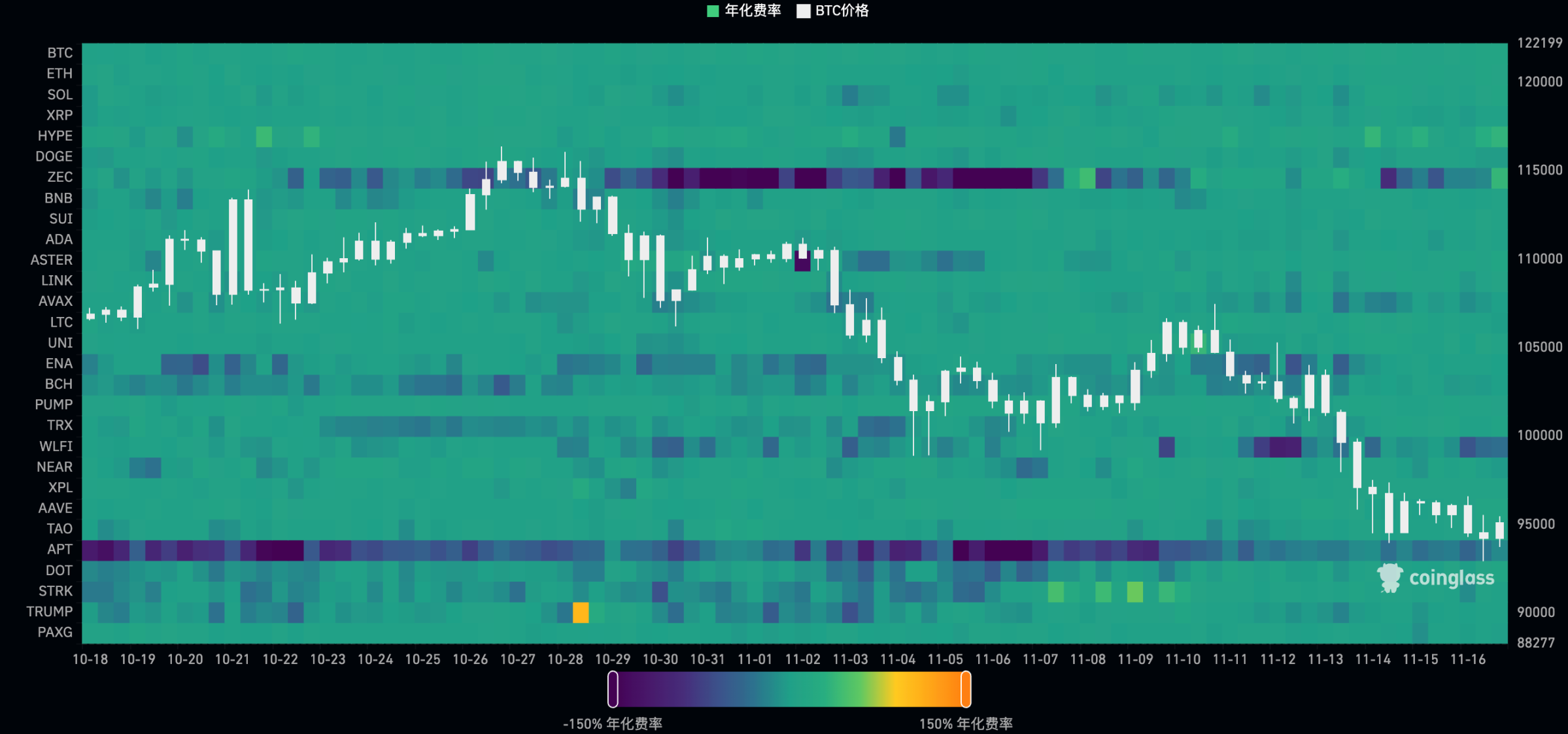 b. 山寨在本轮下跌表现出极大差异化,隐私赛道 ZEC 在上周继续上涨 13%,当前已连续上涨 10 倍,资费在本轮下跌周期反而有所回暖,山寨已提前进入盘整。