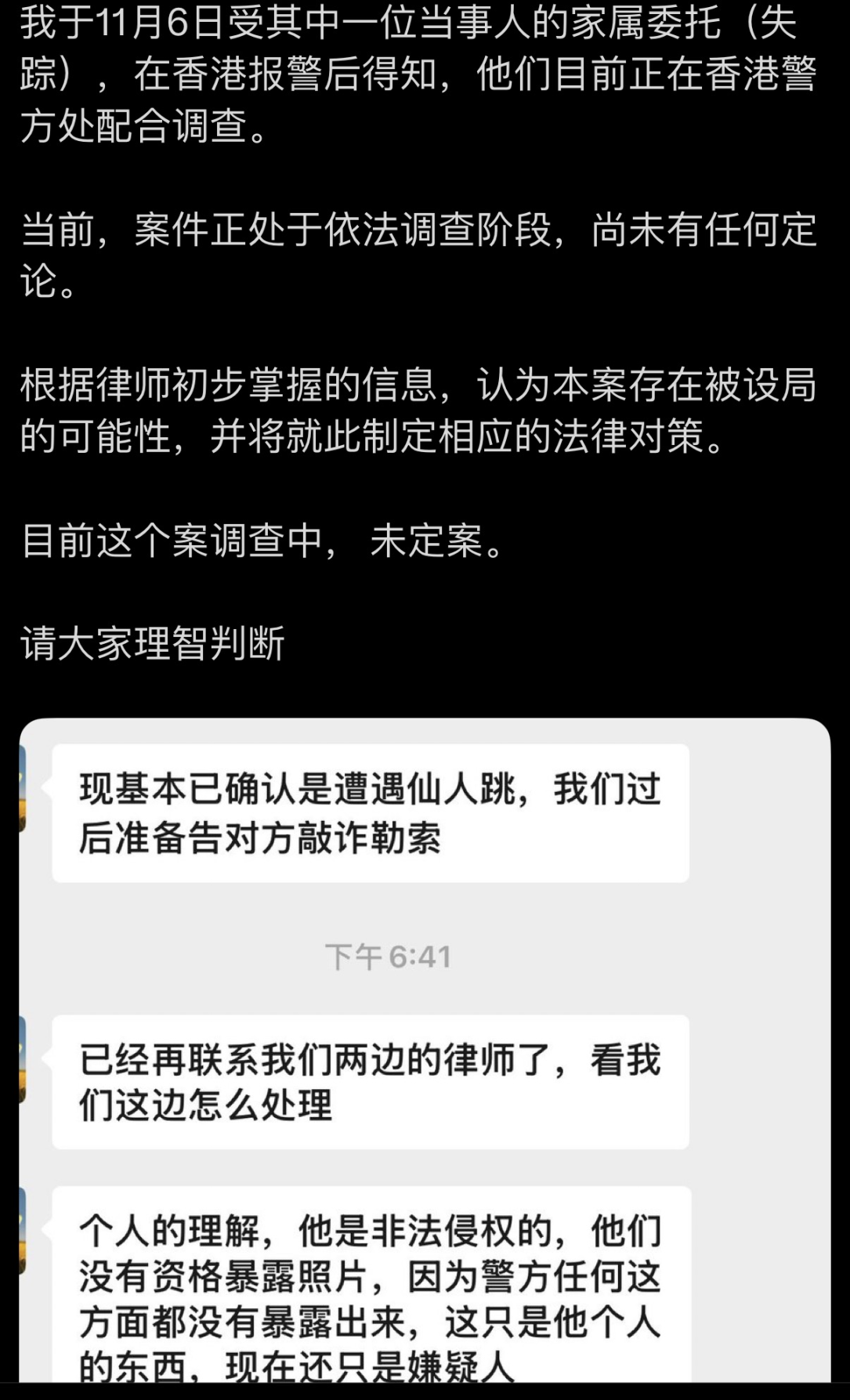 大饼的 K 线图还在震荡,但“人性图”却走出了大阴大阳的极端行情。就在大家还在讨论比特币能不能站稳某条均线时,与前述“性侵”指控相反的说法也被提及:根据一位网友的推文,在其接受了两位男子中的一位的家属委托后,经过律师掌握的信息,两位男子可能存在被设局(仙人跳)的可能。