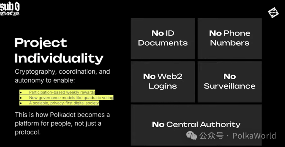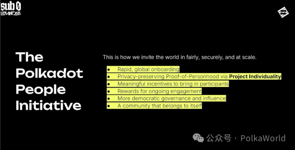 Parity 为此做了一个更大的计划:Polkadot People Initiative。目标是让人类能够以一种隐私友好的方式进入 Polkadot,并让 Polkadot 能够识别“这是一个独立的个体”。