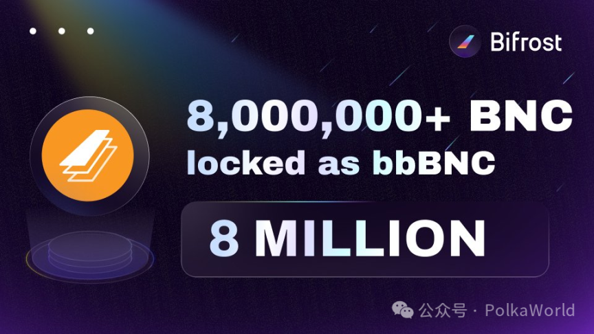 目前 bbBNC 锁定的 BNC 数量已突破 800 万枚,相当于 BNC 总供应量的 10.3%、总流通量的 19.25%!这意味着 Bifrost 社区对 BNC 的长期价值、稳定收益与协议发展,展现出更强信心。随着锁仓规模不断刷新,也带动整个 Bifrost DeFi 模块的安全性和活跃度持续提升。