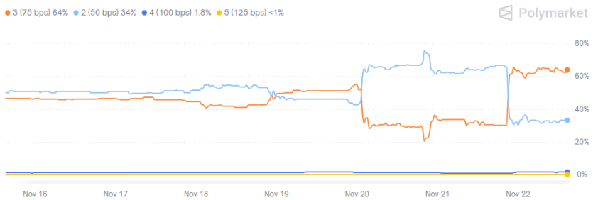 b. Polymarket 数据显示,在纽约联储主席(票委)威廉姆斯讲话后(“就业的下行风险已经增加,而通胀的上行风险已经减轻。我仍然认为在近期内仍有空间进一步调整联邦基金利率目标区间,使政策立场更接近中性水平,从而维持实现我们双重目标之间的平衡”),12 月降息 25bp 的概率出现反转;