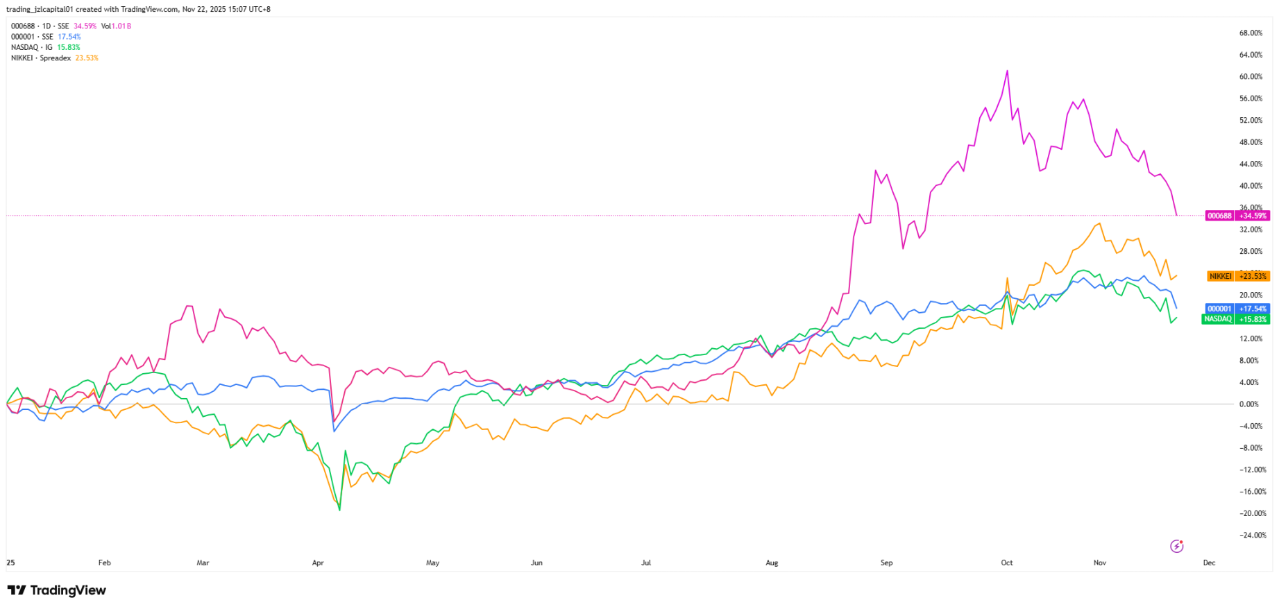 a. 美债收益率维持高位而日债收益率显著上升,使美日利差持续收窄,推动全球利率中枢上移并强化资金回流日本的趋势。若日本加息预期继续加强,这种对科技股的结构性压力将进一步加大;