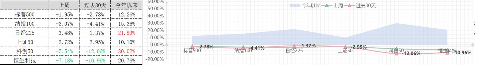 a. 全球股指集体收跌,科创、恒生科技年内涨幅持续收敛;