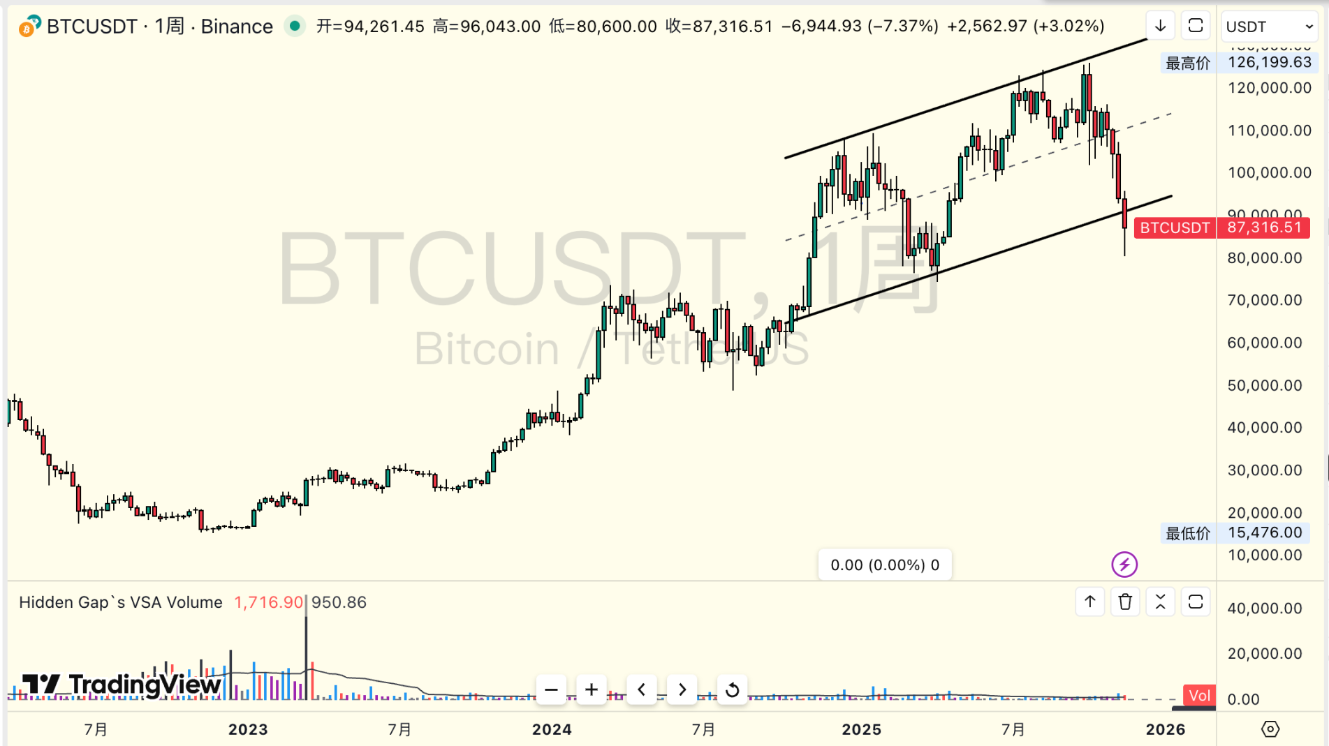 a. 上周对市场预判可能会进入短熊的节奏,本周市场继续遭遇血洗,BTC 周线正式跌破通道下轨形成技术性熊市,市场距离下一个支撑位 74000 左右仅有一步之遥,熊市的特点就是鬼故事多,灰犀牛遍地走,从技术上来看市场虽进入熊市,但随着 12 月 QT 结束以及来年降息预期,趋势性的上行仍需宏观环境转暖。真正具备决定性意义的利好催化因素,或将要等到 2026 年初才会逐步显现;