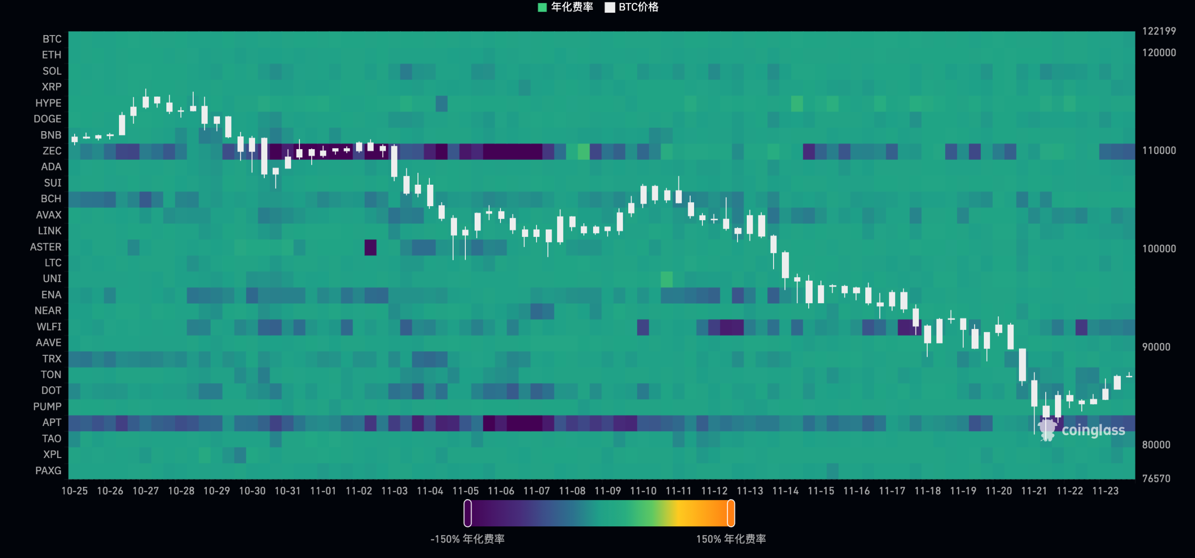 b. 山寨在本轮下跌表现出极大差异化,隐私赛道 ZEC 在上周继续上涨 13%,当前已连续上涨 10 倍,资费在本轮下跌周期反而有所回暖,山寨已提前进入盘整。