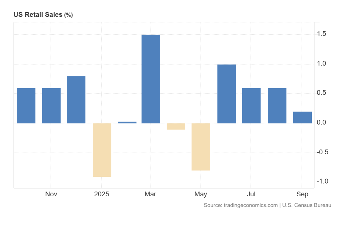a. 零售销售环比增长 0.2%,低于预期的 0.4% 且低于前值的 0.6%,为四个月来最小环比增幅,反映消费者支出动能走弱;