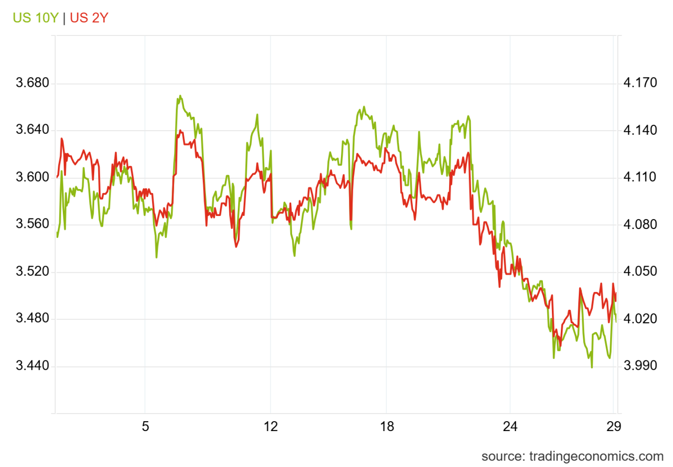 a. 在疲弱的零售与失业率数据 + 美联储官员鸽派信号的影响下,市场对美联储 12 月降息的押注显著升温,特别是对货币政策更为敏感得的 2 年期美债收益率下跌明显;