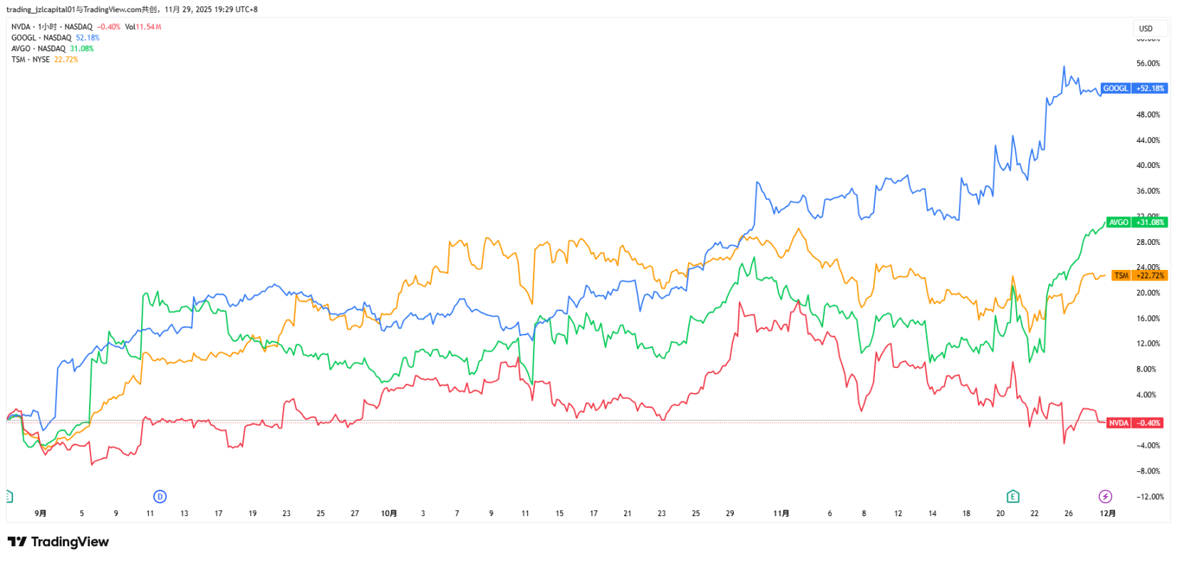 a. 降息预期升温 + Google Gemini 3 上市,市场部分缓解 AI 泡沫担忧,除英伟达外得 7 巨头集体反弹;