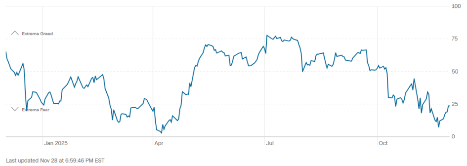 i. 伴随 12 月降息预期回升,恐慌指数由 “极端恐惧” 区间逐渐反弹;