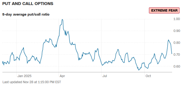 ii. 5 日平均 PUT CALL RATIO 已由 0.8+ 回落至 0.7 区间,市场对短期内潜在下行担忧有所缓解,抛售可能已接近尾声并可能出现技术性反弹或价值买入机会;