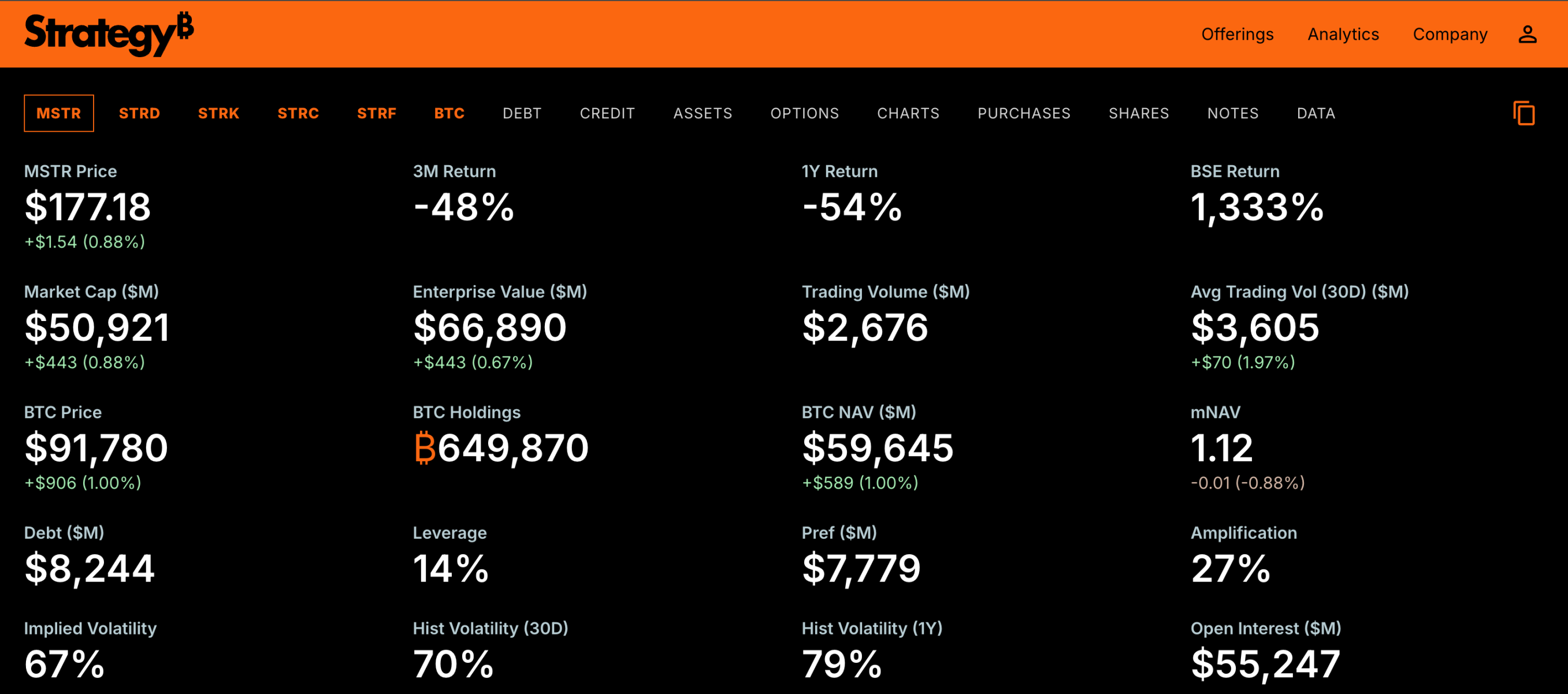 a. 上周市场如预期反弹,在降息预期再次升高的加持下,比特币和以太坊均回到 9 万美元以及 3000 美元之上的整数关卡,从市场流动性来看,ETF 在上周并没有见到明显流入的反弹,反而在周五 BTC ETF 出现了接近一亿美元的净流出,可见两者的反弹都更多依赖于技术性修复与资金回流试探,而非趋势性资金的重新入场,风险资产仍处在“轻仓、低杠杆、主流优先”的资金结构中,等待宏观面与流动性再度明朗化。包括 Strategy CEO 在上周也首次表露了公司有可能出售 BTC 的情况,即只有当公司股价跌破净资产值且无法获得新资金时,才会考虑出售比特币,这与 Michael Saylor 曾直言的绝对不会出售 BTC 相悖,上周介绍的 mNAV 便是最重要的指标,Strategy 在上周也上线了最新的仪表盘,里面详细记录了 Strategy 以及其股票 MSTR 的财务状况以及价格变化,从仪表盘中我们可以看出,Strategy 的 mNAV 计算并非用市值(market cap)除以其持币资产值,而是用的企业价值(enterprice value)除以其持币资产值,企业价值包含了公司股价,负债,优先股等其他收购公司所需付出的部分,因此从 Strategy 的口径来看,DAT 公司在当前市场的灵活度又更大了些,不像上周市场所流传的如此不堪,这对市场也有一定提振作用。