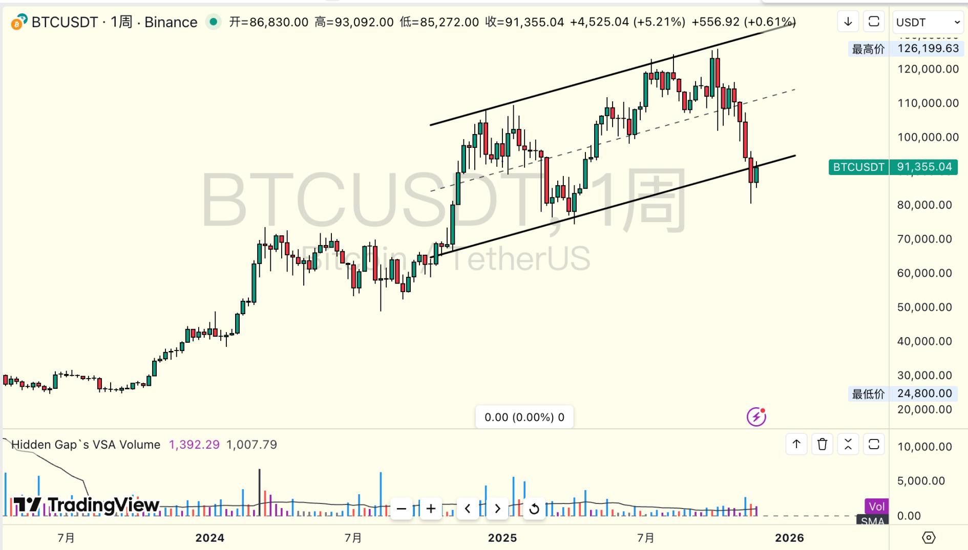 a. 上周对市场预判年底仍然会出现趋势性上行的机会,所持论据即位当前宏观行情仍然向好,但短期来看,政府停摆余波、流动性紧缩、高利率环境以及机构被迫去杠杆,使得市场风险偏好依旧受到压制,ETF 与机构资金总体保持谨慎,零售投资者也未表现出明显的逢低吸纳意愿。价格层面,当前币价在通道下轨纠缠,预计会持续盘整以消耗短线获利了结的筹码,另外受到即将到来的圣诞季的影响,12 月份的币价预计不会出现强烈的价格回暖,所持观点仍是爆发性机会需要等待 26 年初。
