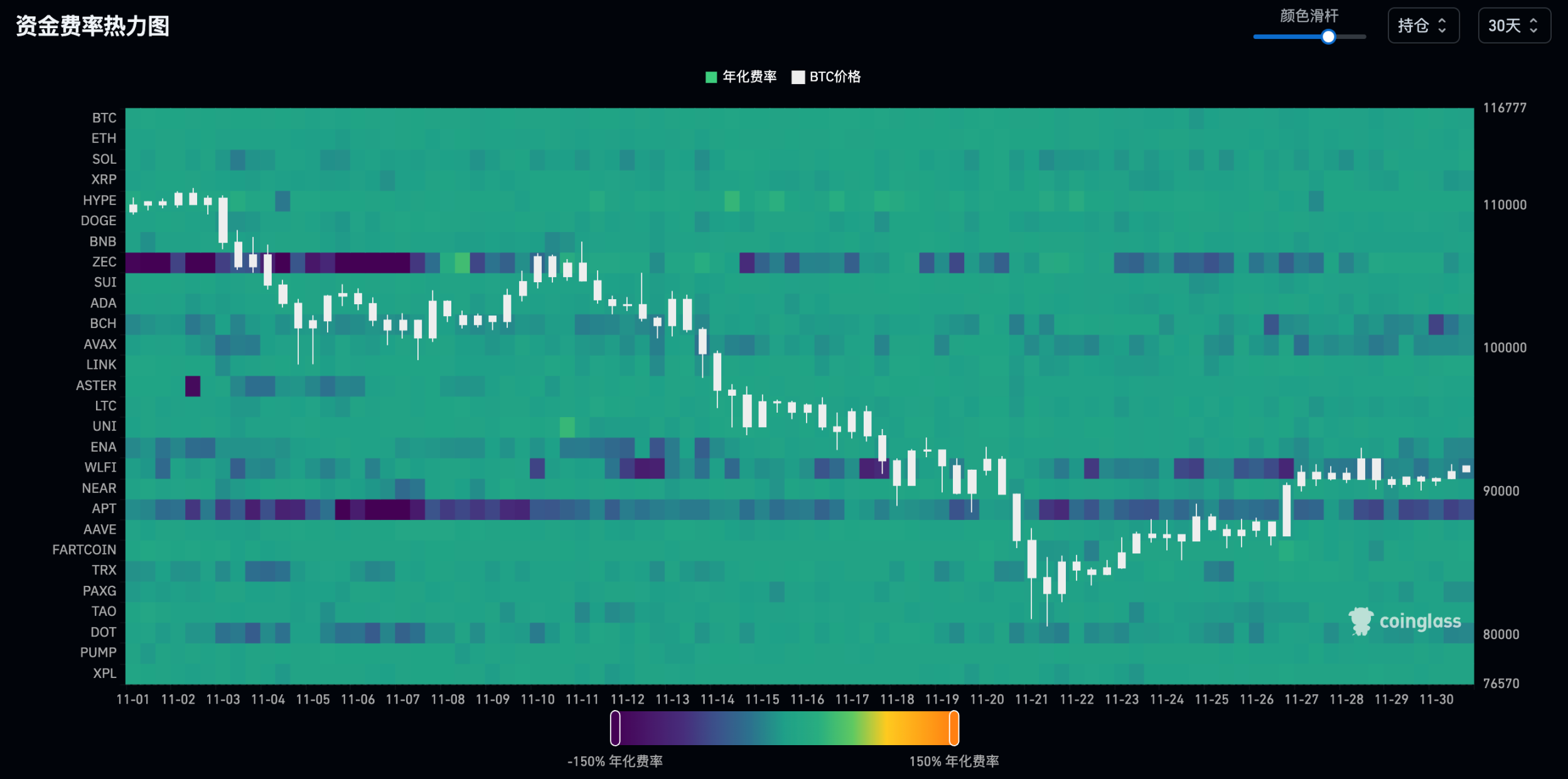 b. 山寨在本轮下跌表现出极大差异化,隐私赛道 ZEC 在上周继续上涨 13%,当前已连续上涨 10 倍,资费在本轮下跌周期反而有所回暖,山寨已提前进入盘整。