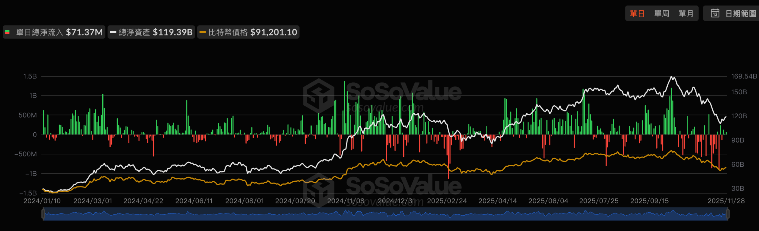 a. 上周市场反弹,但 ETF 方面并没有强力的买入支持,由于感恩节假期,上周只有四个交易日,单周 BTC ETF 仅有 7000 万美元的净流入。IBIT 在 11 月共流出 23.4 亿美元,其中 11 月 14 日与 18 日分别录得约 4.63 亿美元与 5.23 亿美元流出,连续刷新单日纪录,对此贝莱德也表示,这类资金流动属于正常现象,公司对现货 ETF 的长期发展依然保持强烈信心,目前 IBIT 历史总净流入达 625.66 亿美元,伴随比特币本周四重新突破 9 万美元,目前 IBIT 投资者整体浮盈约 32 亿美元,已完全收复前期回调带来的损失。