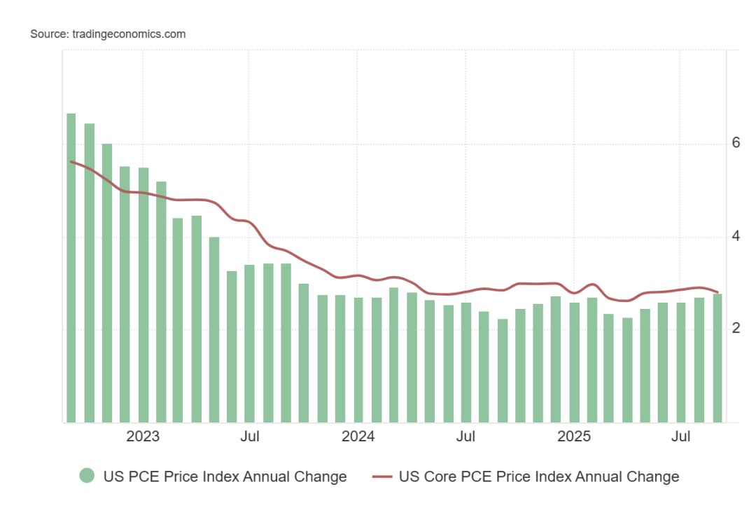 a. 9 月 PCE 指数同比上涨 2.8%,符合预期但高于前值的 2.7%。9 月核心 PCE 指数同比上涨 2.8%,符合预期并低于前值的 2.9%;