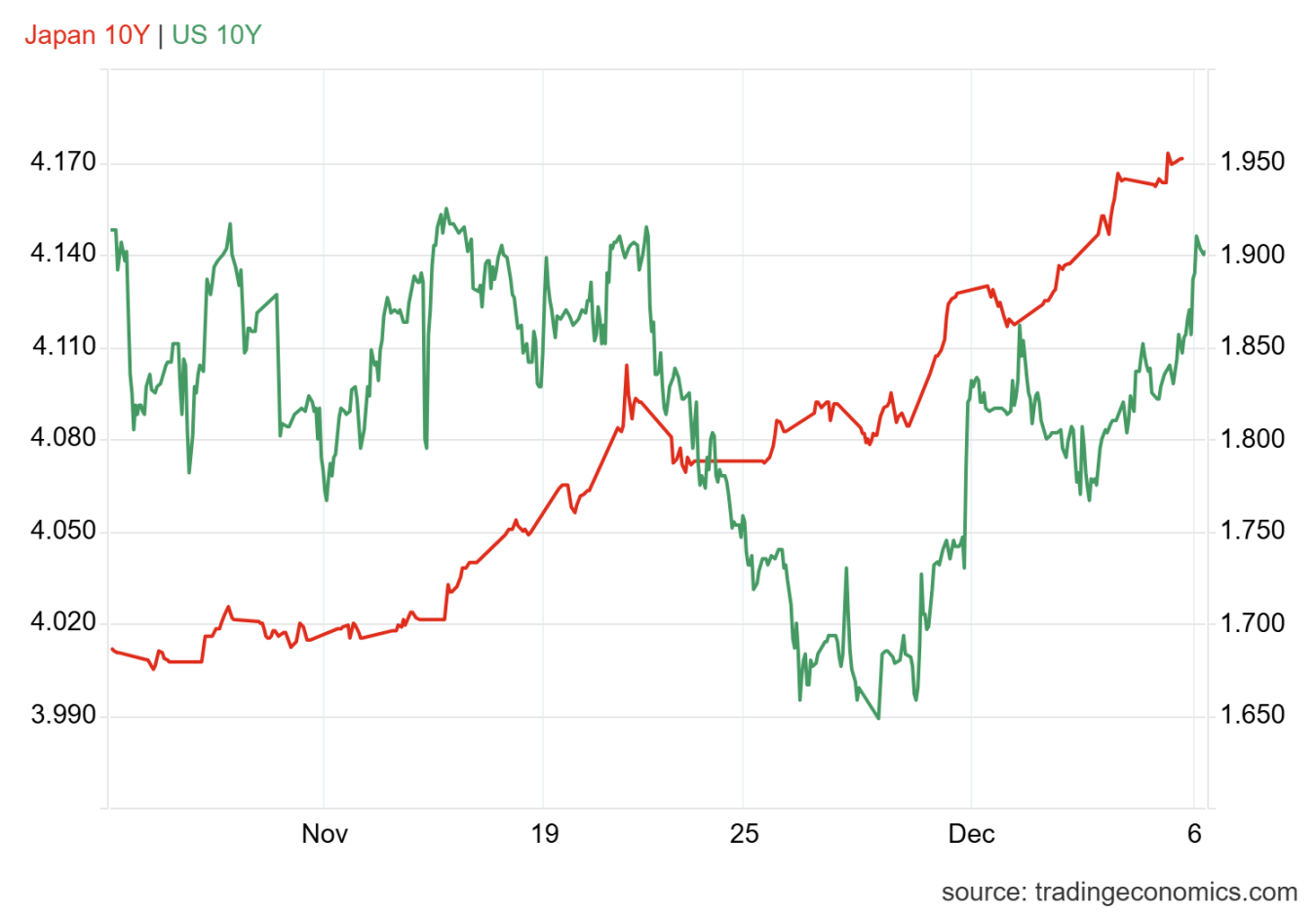 2. 日 10 年期国债收益率近 20 年高点,套息交易平仓可能性令风险资产承压;