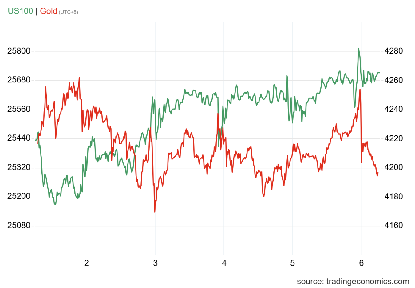 a. 通胀缓和 + 就业走弱,市场押注美联储即将降息,推动黄金维持在每盎司 4,200 美元高位震荡。整体宏观环境转向鸽派,成为金价主要支撑力量。周跌 0.6% ,30 天涨 5.80%,年内涨 59.95%;