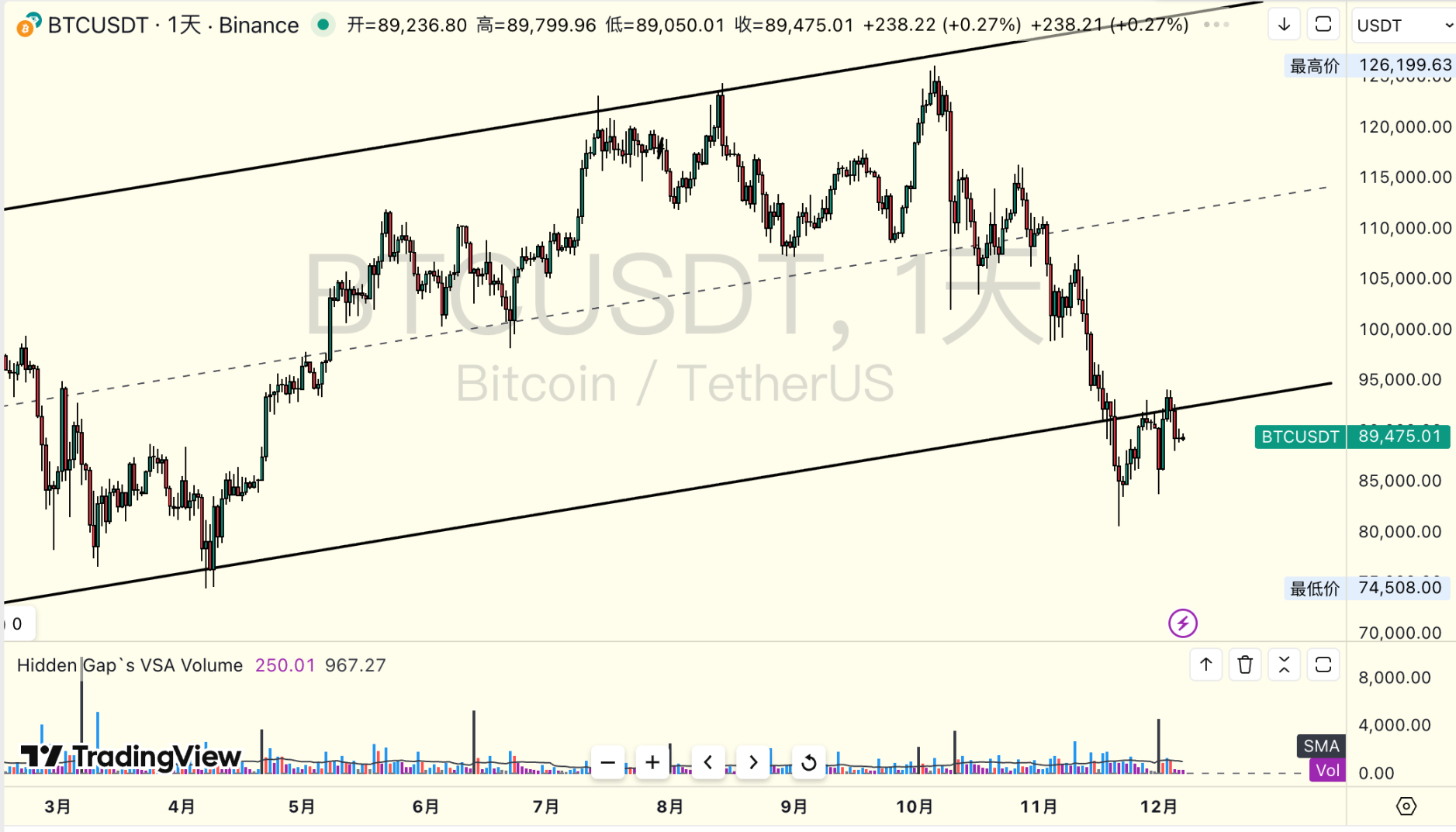 a. 上周对市场预判预计不会出现明显的价格拉升,目前的币价很难出现真正意义上的突破或者反转,基本都是一根阳线后跟着长时间的阴跌和盘整,并没有什么有效的形态产生。本周市场将迎来今年最后一次议息会议,预计波动会有所增大,如果出现一个前低的位置,会形成一个有效的头肩顶的形态,之后再向上开启上涨行情会比较合理,本周预计会宽幅震荡。