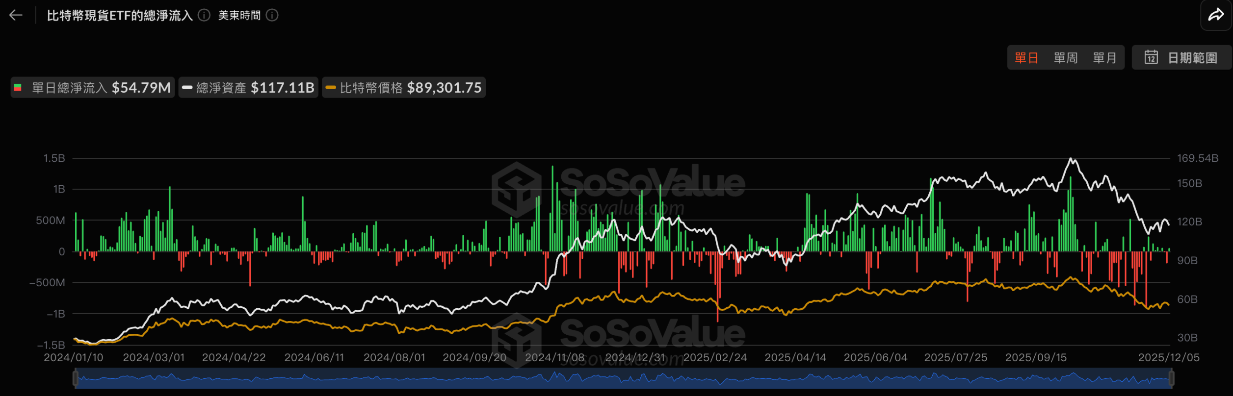 a. 上周市场震荡,ETF 市场也没有明显的反弹迹象,BTC ETF 单周净流出 8700 万美元,基本没有什么波动,12/2 先锋基金宣布入场加密市场,当天仅对 IBIT 的 ETF 有较强的提振,由于加密市场在年底的走势较差,机构在十二月大幅买入的概率更低,因此会关注来年一月 ETF 市场表现。