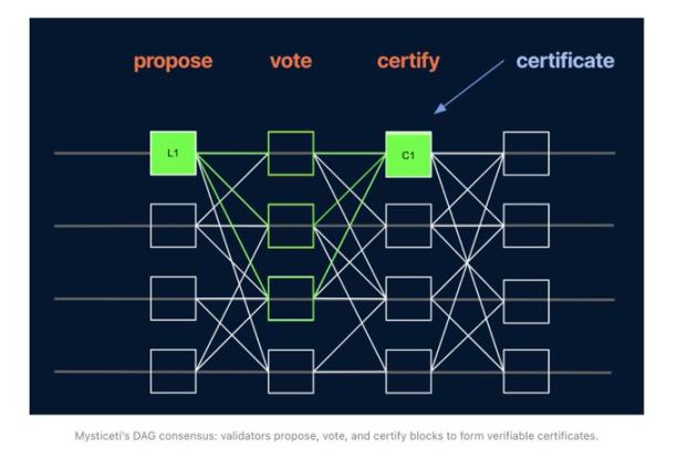 2025 年 11 月,Sui 推出了 Mysticeti v2 共识升级。此次升级将交易验证直接集成到共识过程中,而非作为独立步骤运行,从而减少了冗余的验证工作和延迟。
