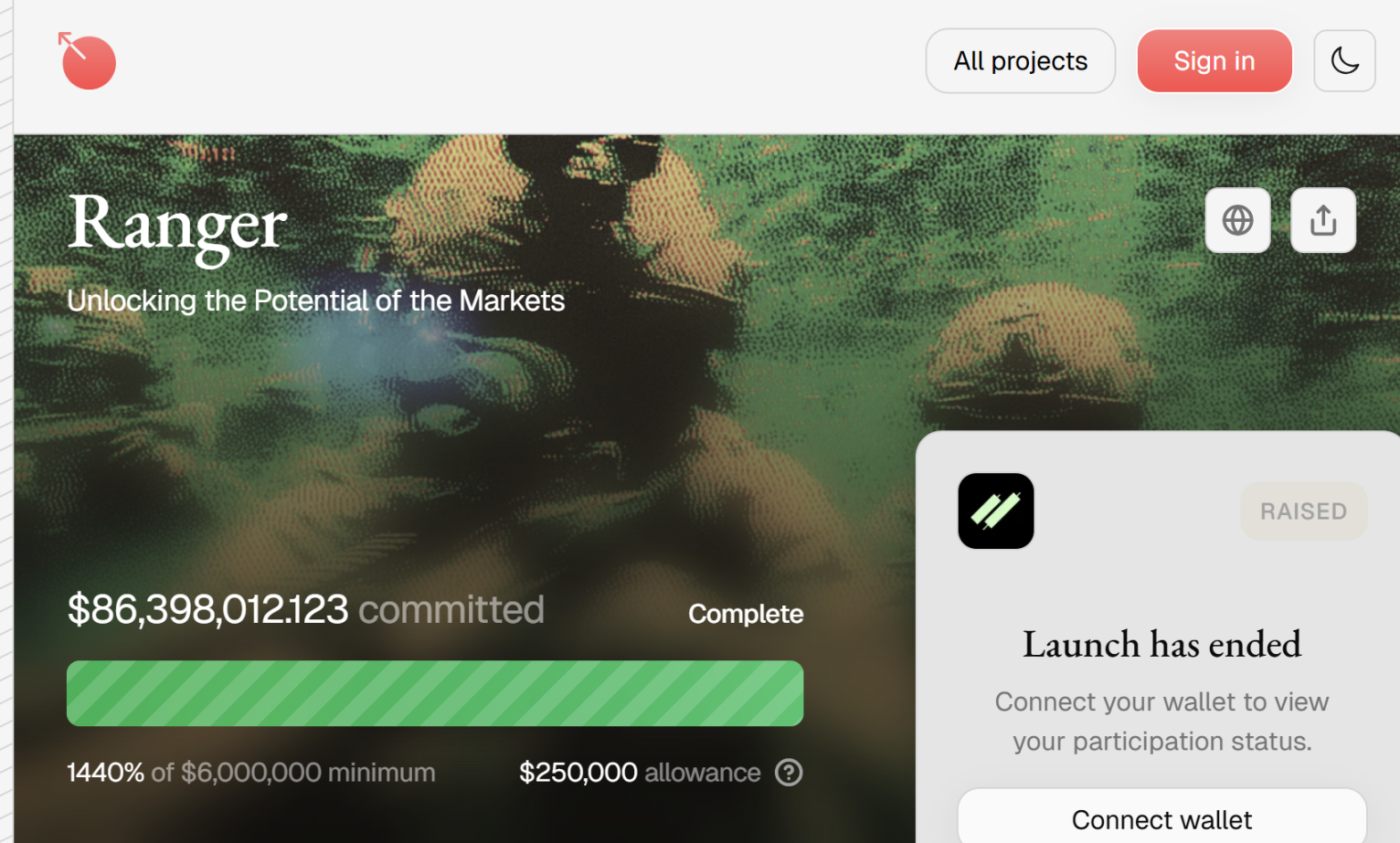 1 月 11 日,Ranger 已完成公募,其认购总额超 8600 万美元,代币 RNGR 现已开放交易。