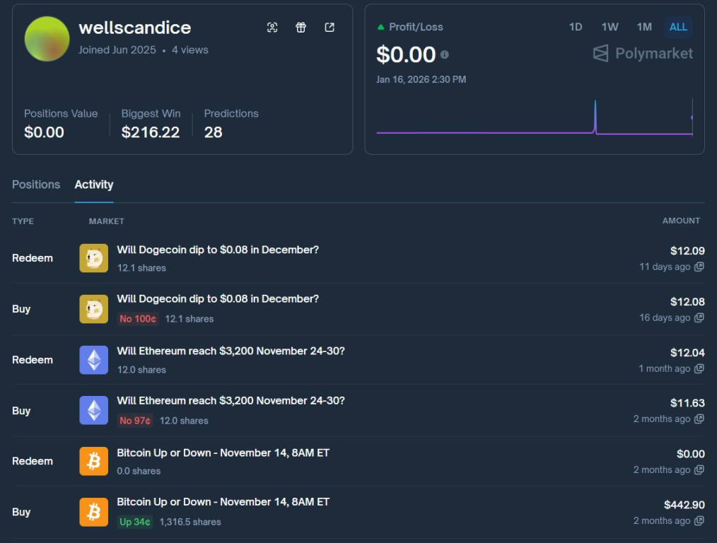 交易行情获取财富的场所,早已不再局限于交易所以及 DEX 了。想象一下当你打开 Polymarket 页面,坐在电脑前,盯着比特币的价格走势图。屏幕上,Polymarket 平台的界面闪烁着橙色的比特币图标,你下注了全部身家——仅仅 12 美元——押注比特币在某个时间段内会上涨。市场赔率高度不确定,但你凭借对链上数据、新闻动态和 K 线形态的分析,几小时后,市场结算,你赢了,账户余额翻倍到 24.31 美元。不过这只是开始。你深吸一口气,继续全仓押注下一次,你又赢了,余额变成 40.35 美元。就这样,一次次全仓操作,你像滚雪球一样积累胜利。