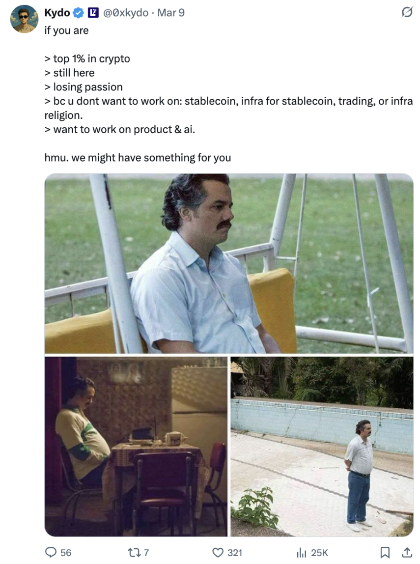 如果你现在不是做稳定币,也不是对金融市场有极度热情,那你在加密行业里,大概率已经感受不到任何乐趣了。