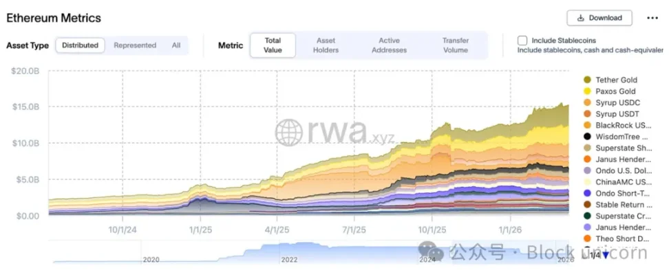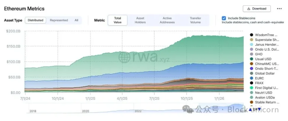 然而,其货币结构从未崩溃。年化发行量约为 0.8%,与比特币的通胀率大致持平。现在,各种因素正在重新汇合。机构用户数量正在显著且持续地增长,RWA、稳定币和代币化基金在以太坊上都在蓬勃发展。质押机制终于成熟,价格也已达到合理水平。